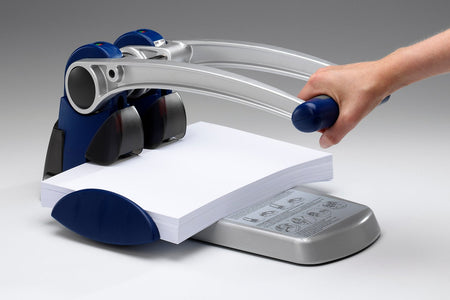 - Punches up to 150 sheets of paper with one push and up to 300 sheets with a second push