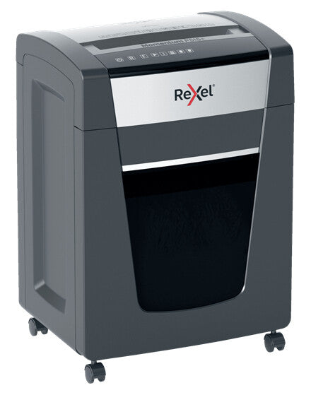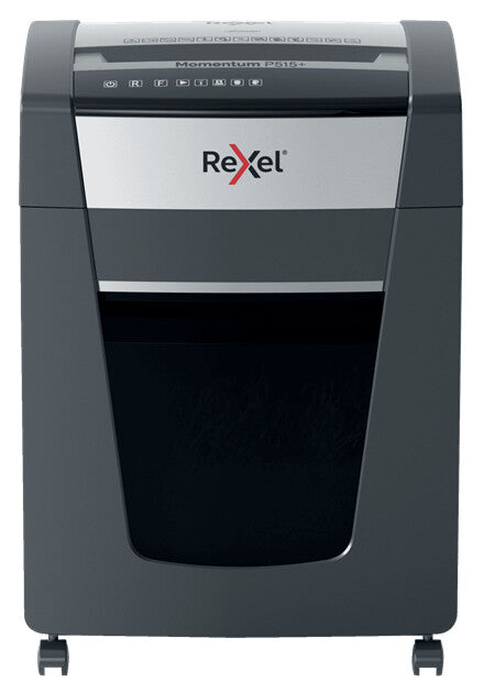 Rexel Momentum jam free paper shredders are ideal for destroying confidential documents in the office. The P515+ shredder machine shreds up to 15 sheets of A4 paper (80gsm) in one go through the manual feed slot into P-5 (2x15mm) micro cut pieces. Active sensing technology measures the number of sheets being fed in real-time to stop paper jams and misfeeds; indicated by a red LED on the control panel. This paper shredder will not operate until the number of sheets is reduced below or at the maximum sheet capacity. This micro cut shredder is designed for moderate to heavy use with its high sheet capacity, large 30L bin size and long run time of up to 4 hours. There's no need to remove staples and paper clips first.