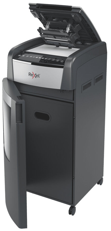 The Optimum AutoFeed+ 600M micro cut shredder automatically shreds up to 600x A4 sheets of paper (80gsm) at a time, into P-5 (2x15mm) micro cut pieces. This auto feed shredder machine is a sophisticated office shredder, featuring a 110L pull out bin. No need to manually feed paper, or remove staples and paper clips first, this automatic paper shredder will do all the work for you.