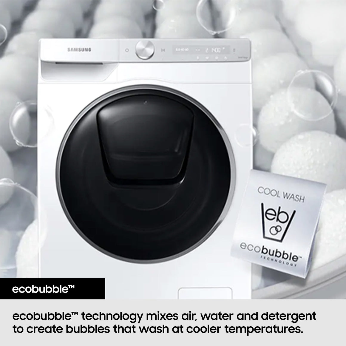 Make laundry less of a chore. ecobubble™ technology mixes air, water and detergent to create bubbles that wash your clothes at cooler temperatures.