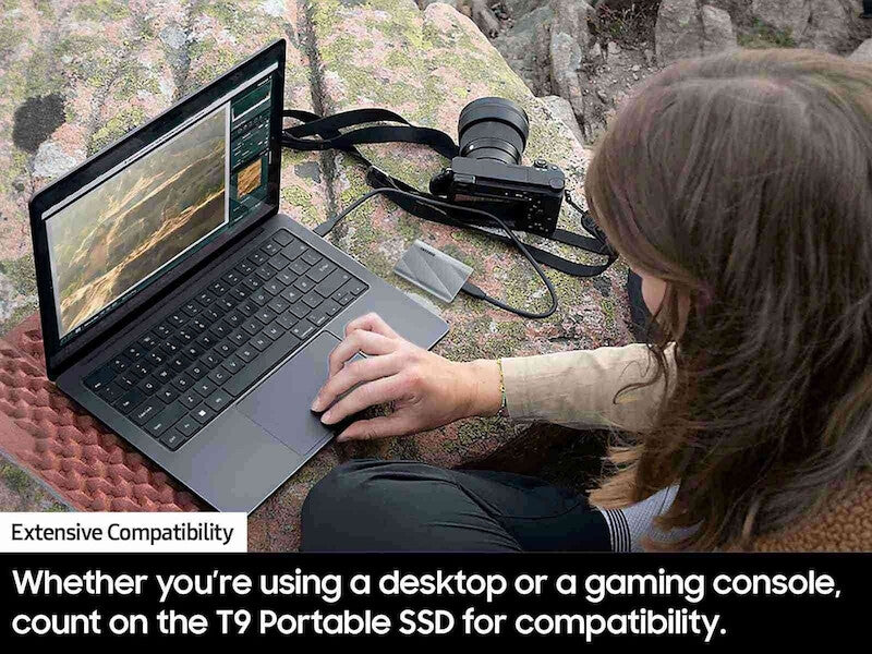 Whether you’re using a desktop, camera or a gaming console, count on the T9 Portable SSD for extensive compatibility. It’s a true team player when it comes to heavy-duty application usage or file-saving.