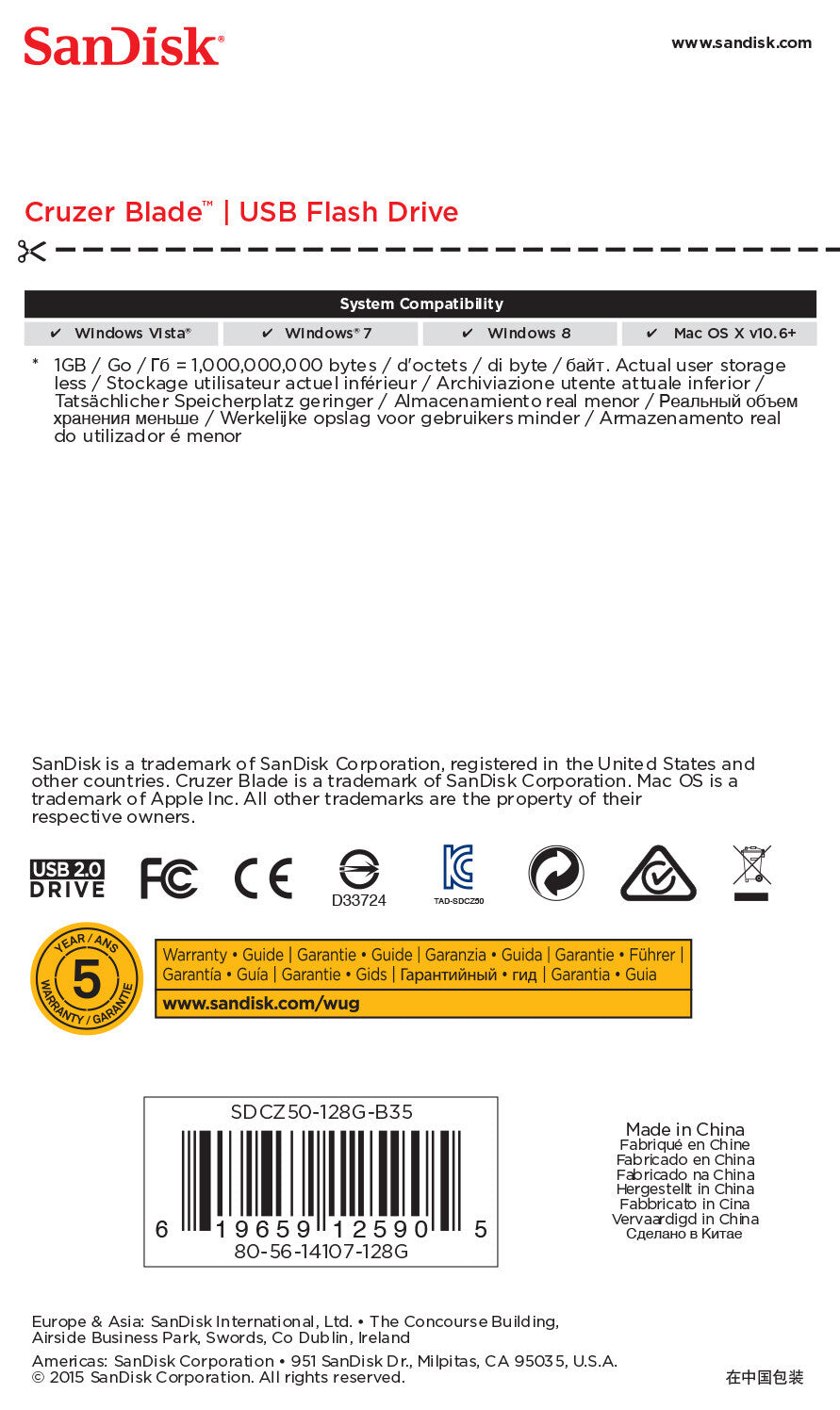 Designed by SanDisk, a USB in flash memory innovation, the Cruzer Blade USB flash drive packs generous capacity into a compact form. Available in sizes up to 128GB, this USB drive can hold all your must-have files.