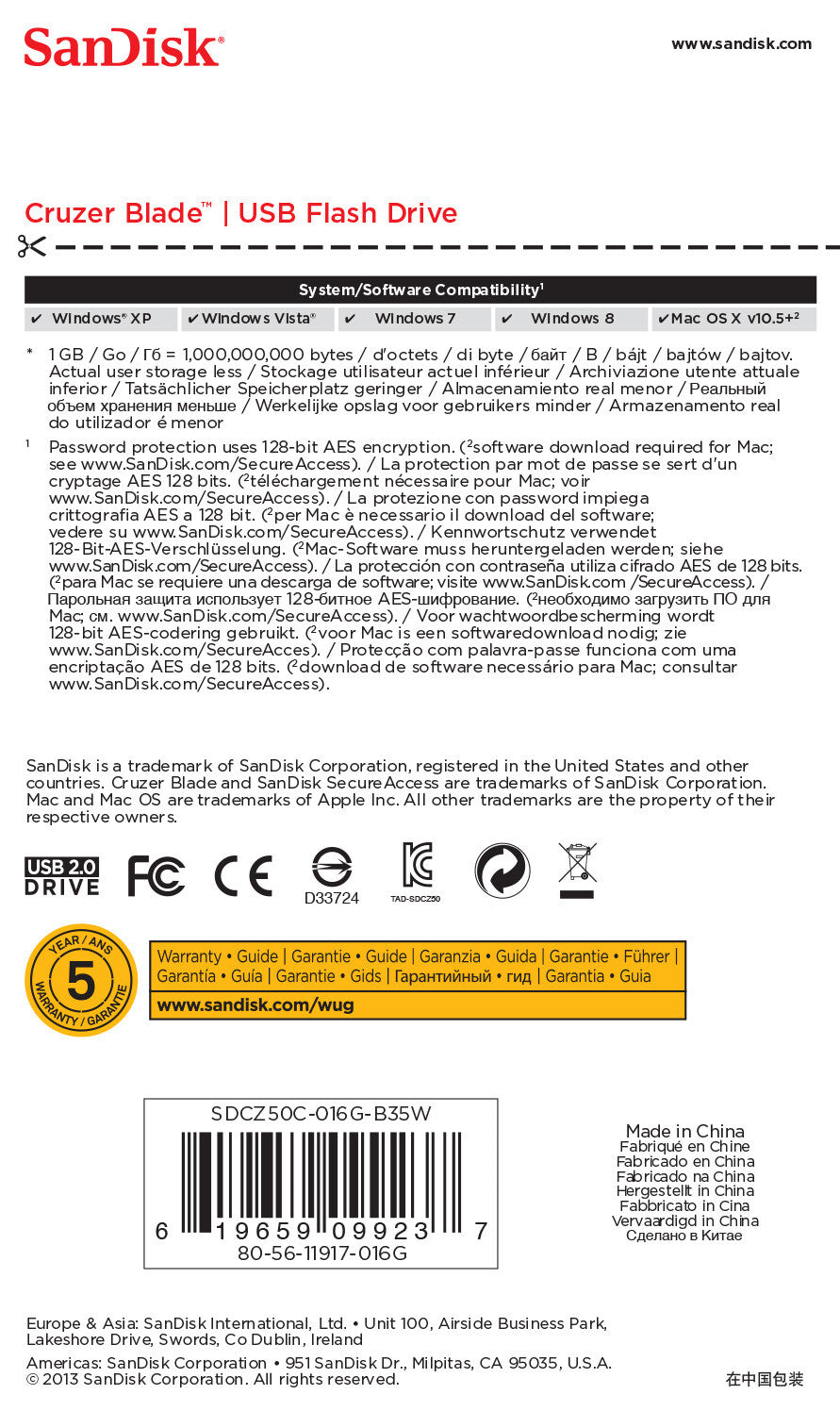 Designed by SanDisk, a USB in flash memory innovation, the Cruzer Blade USB flash drive packs generous capacity into a compact form. Available in sizes up to 128GB, this USB drive can hold all your must-have files.