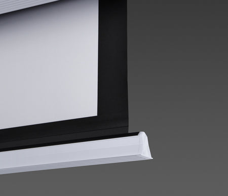 Made with such care and attention it is shame to hide it in the ceiling!. When fitted you will hardly notice the screen other than a very smart ribbed aluminium profile edged by a stylish curved end panel at each side of the screen. As it is all white it will blend in with most ceilings.