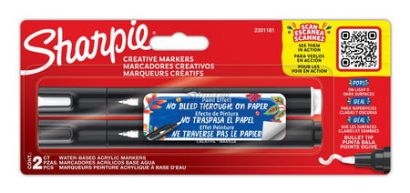 - Sharpie Creative Marker Acrylic Paint Pens / Water-Based Paint Markers / No-Bleed Ink Writes on Most Surfaces / Bullet Tip / Assorted Colours / 2 Count