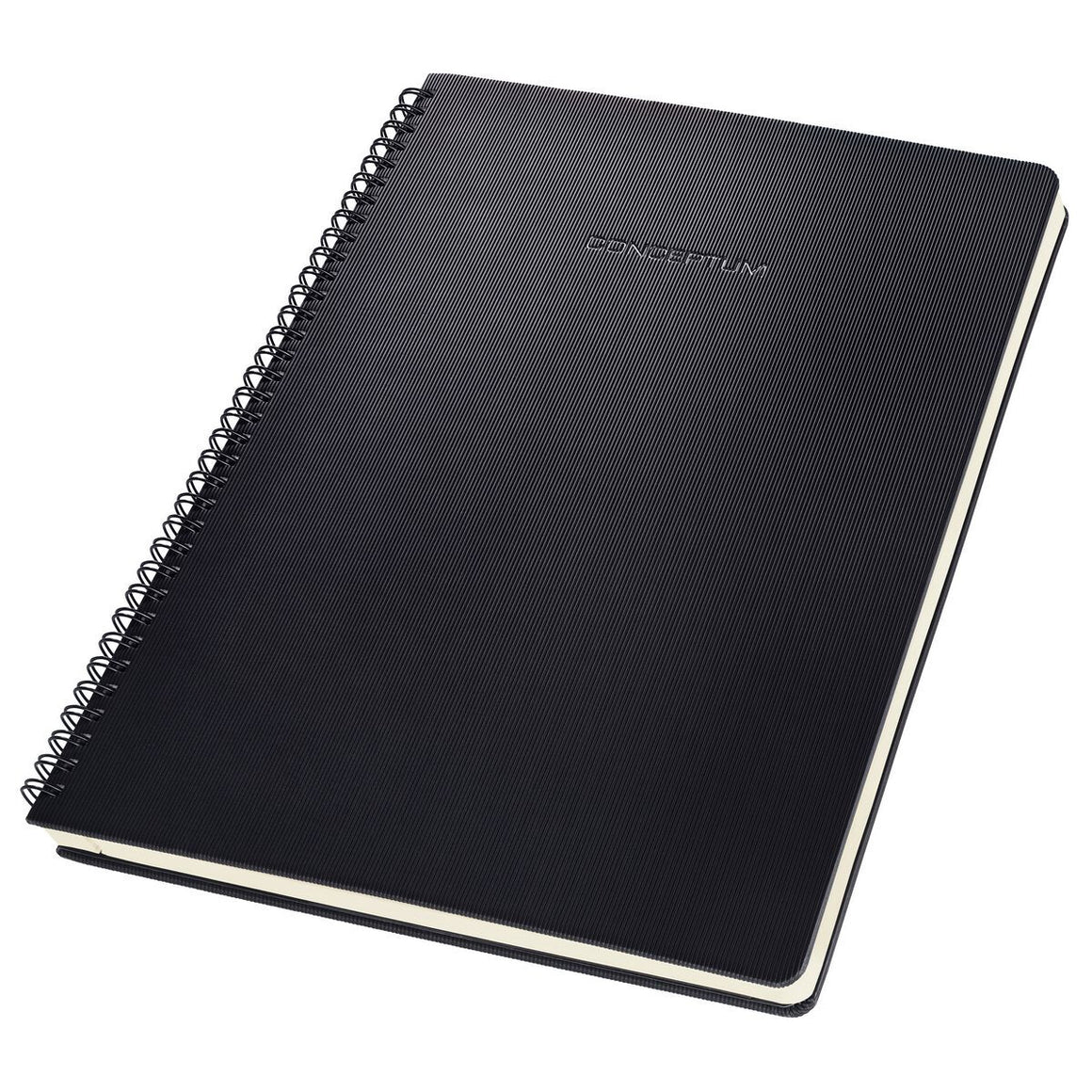 The CONCEPTUM® spiral notepad is perfect for the contemporary business look: sturdy, versatile and practical. The durable double metallic spiral is extremely robust and ensures that the notepad opens completely flat, ensuring a pleasant writing experience. The hardcovers on the front and back are sturdy and clearly show that this is a high-end product. On the inside, the CONCEPTUM® spiral notepad scores high with features such as space for the date at the top of the page and a blank side margin for additional notes.