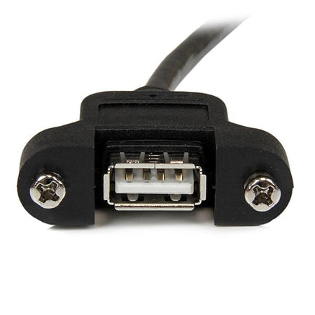 The USBPNLAFAM1 1ft Panel Mount USB Cable provides a well-secured, easy to access USB-A port on your PC or on a faceplate, allowing you to customize your systems to suit your needs. Perfect for podiums, kiosks and other solutions where added access to USB devices is required.