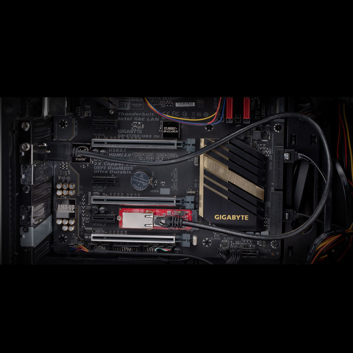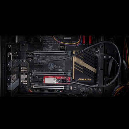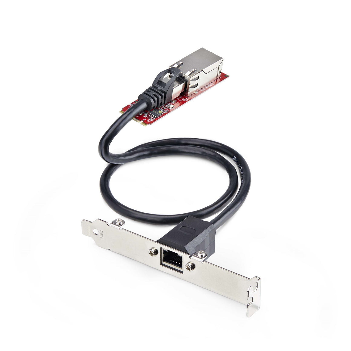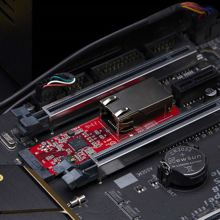 The network adapter card connects to an available M.2 2280 PCIe slot (B or M key compatible). Standard and low-profile brackets and a 2ft (60cm) Cat6 adapter cable are included for versatile installation. Compatible with Windows, and Linux.