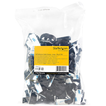 StarTech.com 100 Adhesive Cable Management Clips Black - Network/Ethernet/Office Desk/Computer Cord Organizer - Sticky Cable/Wire Holders - Nylon Self Adhesive Clamp UL/94V-2 Fire Rated