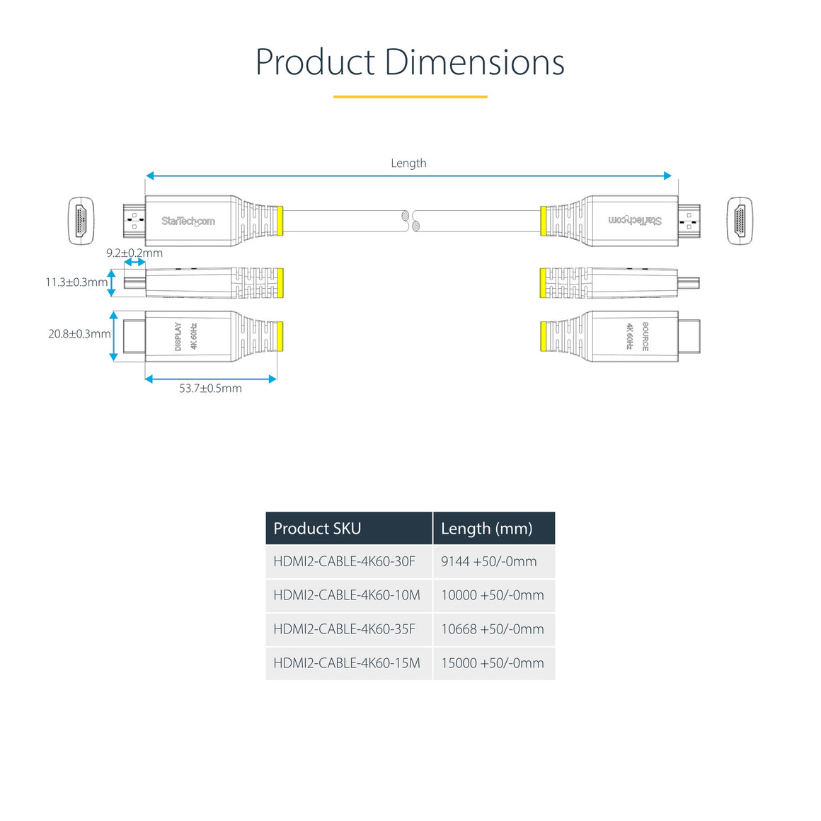 Connect to a 4K UHD TV or monitor, using this HDMI 2.0 Cable. The connector markings enable quick visual identification, distinguishing this cable from other similar-looking or unmarked HDMI cables. Eliminate guesswork and always choose the appropriate cable to support full HDMI 2.0 with Ethernet capabilities.