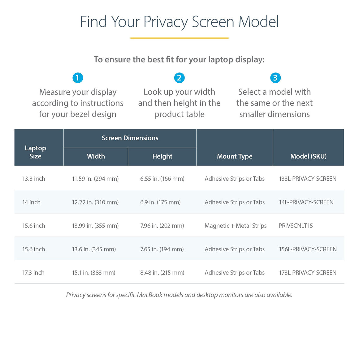 Laptop privacy screen features a universal design compatible with 15.6" 16:9 aspect ratio displays. The anti-glare design provides visual comfort while reducing the adverse effects of blue light emitted from the screen. Reversible design allows you to quickly adjust to different light conditions throughout the day.