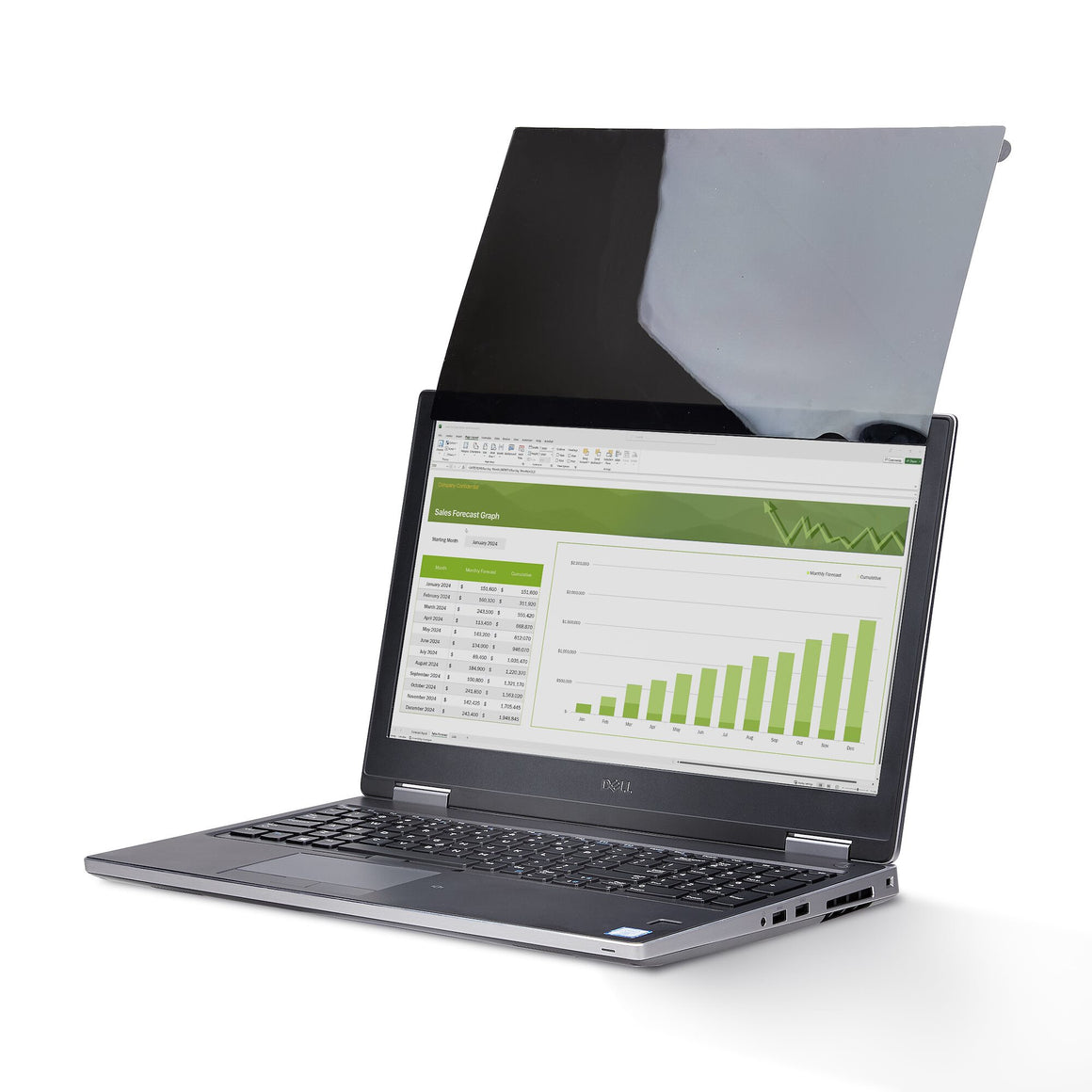 This privacy filter is a convenient and cost-effective solution to protect confidential data from unwanted viewers. The privacy shield darkens your computer's screen from the side while providing a clear viewing angle of 60 degrees (+/- 30 degrees from center) to the user.