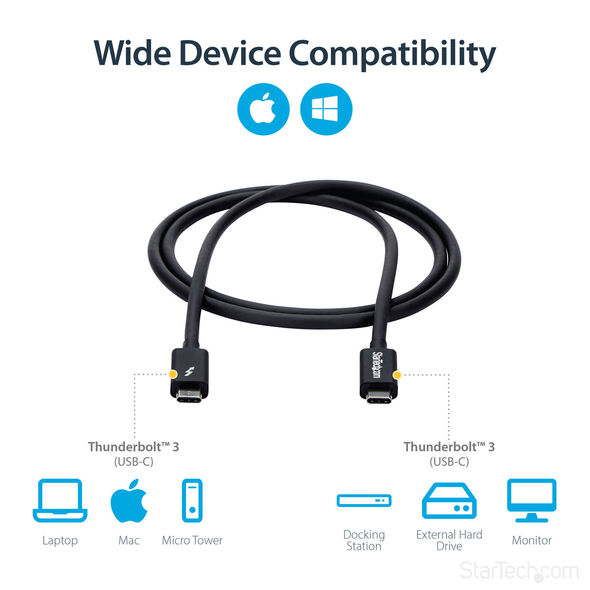 The Thunderbolt 3 cable is fully compatible with all of your USB 3.1 Gen 2 devices and can be used for charging and syncing your mobile devices. You can also connect and power USB-C laptops, such as your MacBook or Chromebook™, and USB-C peripherals, such as your portable hard drive and docking station.