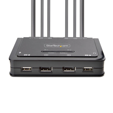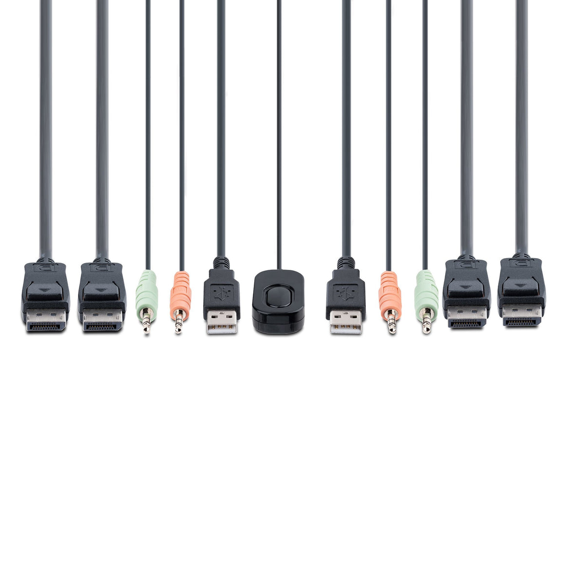 - DUAL 4K 60HZ MONITOR KVM SWITCH: Enables switching between two USB-A and DisplayPort-enabled desktops to share a mouse, keyboard, audio, and dual-4K 60Hz DisplayPort displays