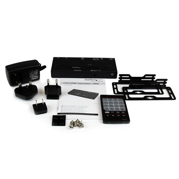 Save time by connecting two HDMI video source devices to your HDMI display instead of manually connecting individual cables. Mounting hardware is also included for a tidy, professional installation.