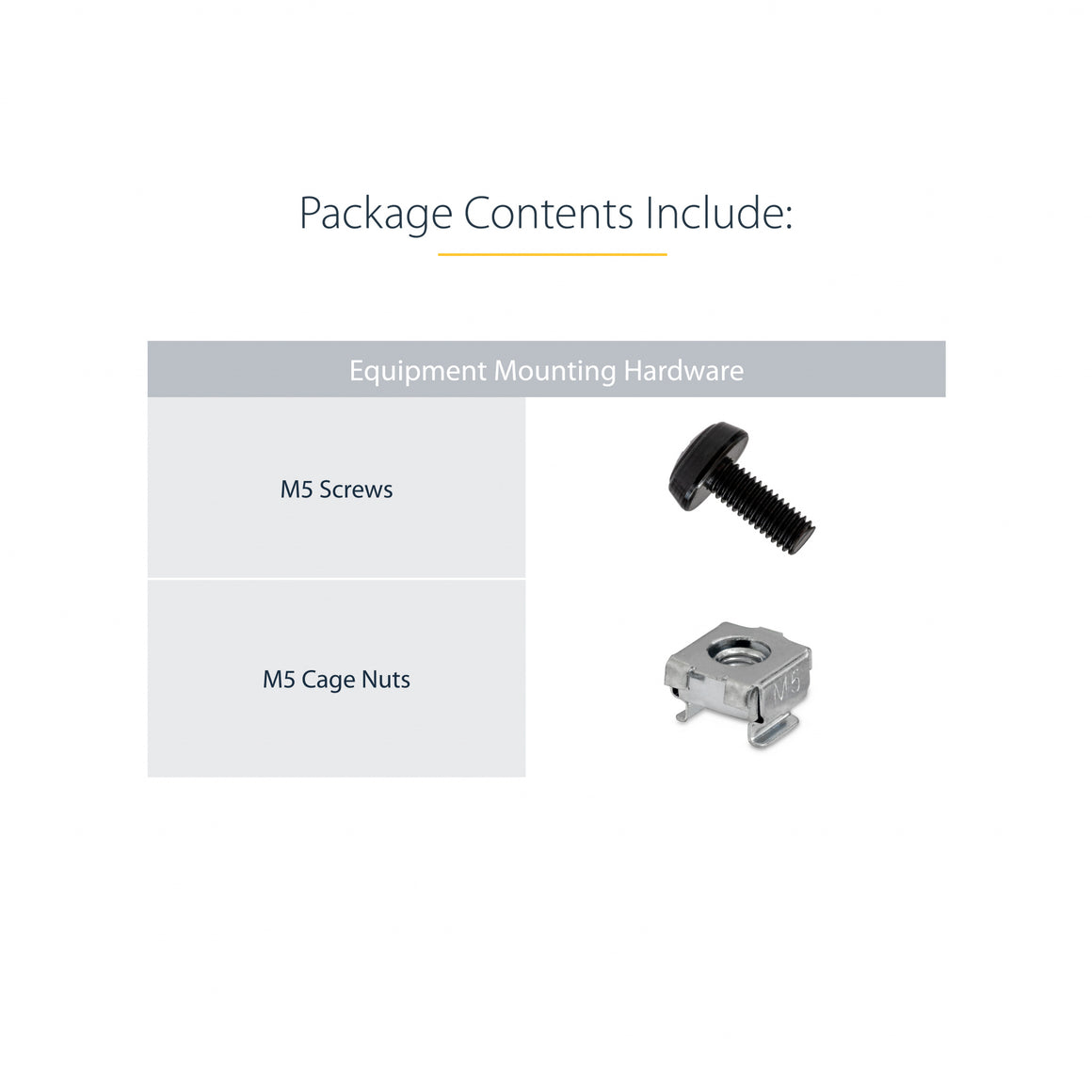 The 12U rack features a compact and lightweight free-standing design that is suitable for installation on or around your desk giving you easy access to the mounted equipment in your workspace. This lightweight 2 post rack is engineered to meet EIA rack mount standards and includes a pack of 20 M5 screws and Cage Nuts, allowing you to mount up to five devices into the rack right away.