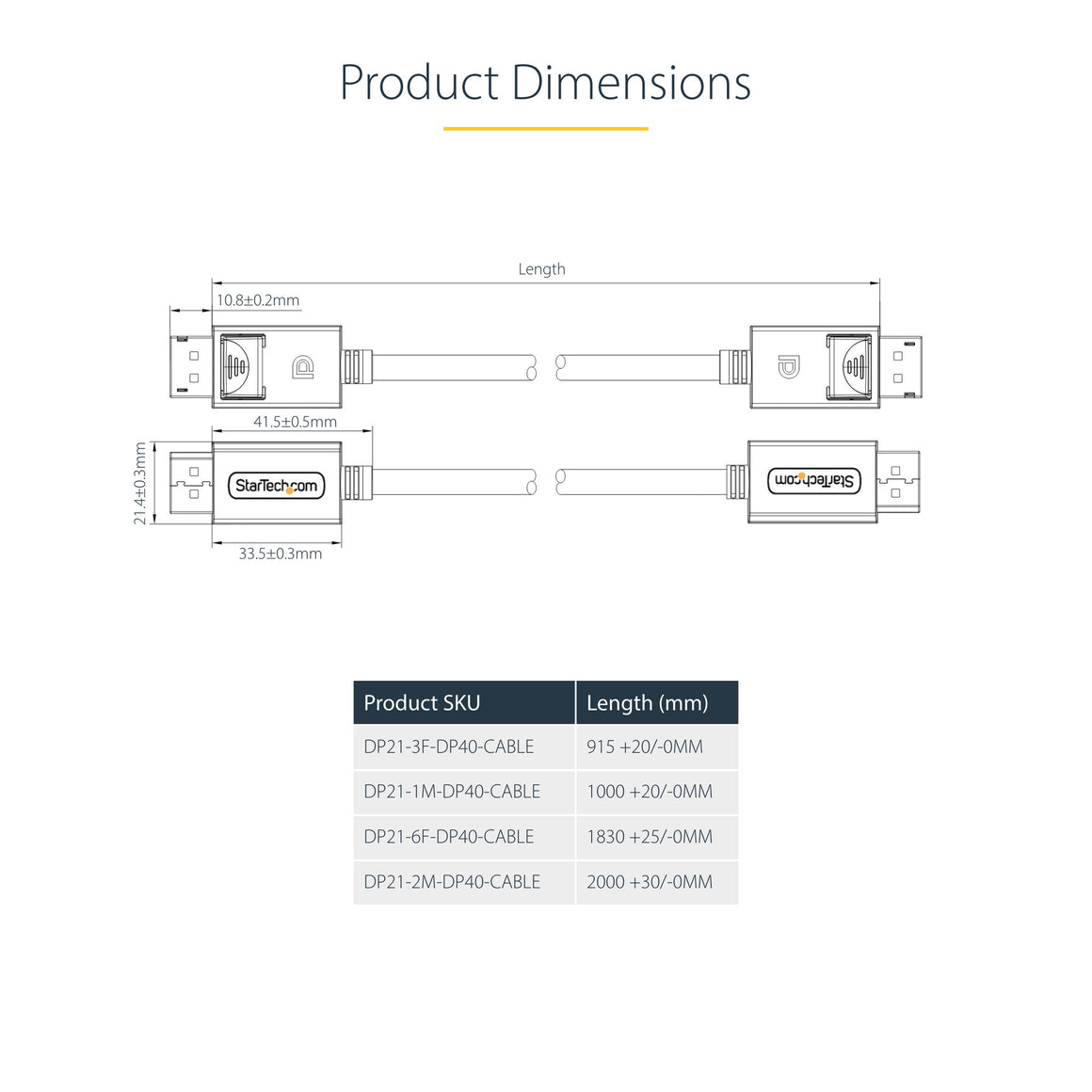This DP40 DisplayPort cable supports the following DP 2.1 features: