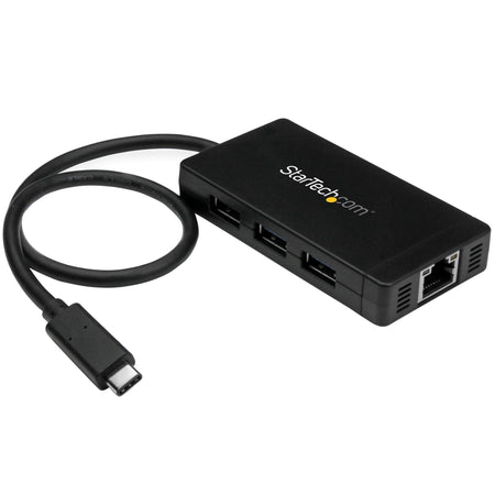 StarTech.com 3-Port USB 3.0 Hub plus Gigabit Ethernet - USB-C - Includes Power Adapter~3-Port USB-C Hub with Gigabit Ethernet - USB-C to 3x USB-A - USB 3.0 (5Gbps) - Includes Power Adapter