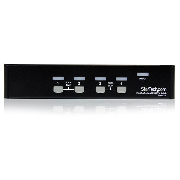 The SV431USB 4 Port rack mountable VGA USB KVM Switch with Hub offers simple control of up to four computers from a single monitor/display and USB peripheral set (keyboard, mouse).