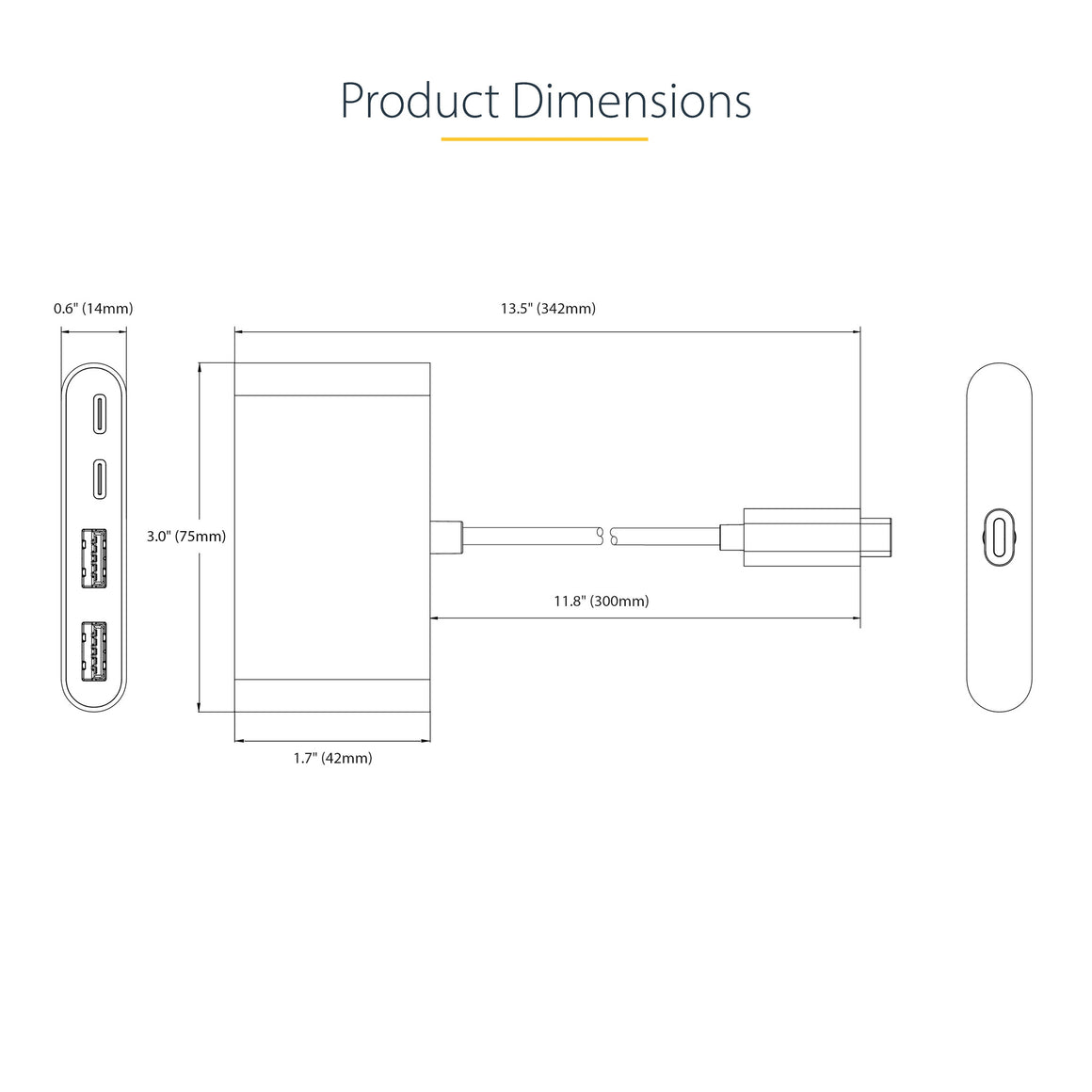 USB Type-C to 2x USB Type-A and 2x USB Type-C | USB 3.2 Gen 1 (5Gbps) | 100W USB Power Delivery Pass-Through