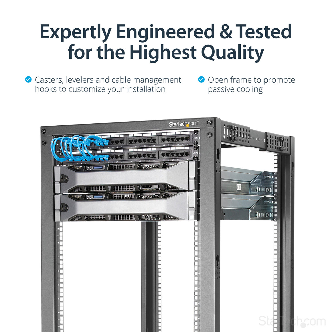 Computer Equipment Rack | 22" to 40" Adjustable Mounting Depth | Casters | Leveling Feet | Cable Management Hooks