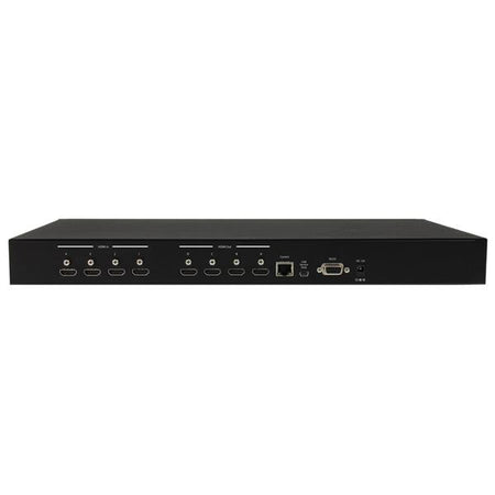 The split-screen multiplexing switch combines the flexibility of a matrix switch with the scalability of a video wall, giving you the freedom to combine video sources on a single display. You can also distribute different video combinations independently across four individual displays. The switch offers full matrix configuration supporting four different picture-and-picture modes per display: Matrix Mode (1x1) / Dual Mode (2x1) / Quad Mode (4x1) / TV Wall Mode (1x4).