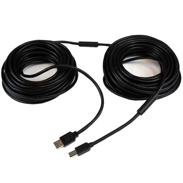 The USB2HAB65AC 65ft/20m USB A to B cable incorporates bus-powered active circuitry, which enables it to perform beyond the 5-meter limit of a standard USB cable.