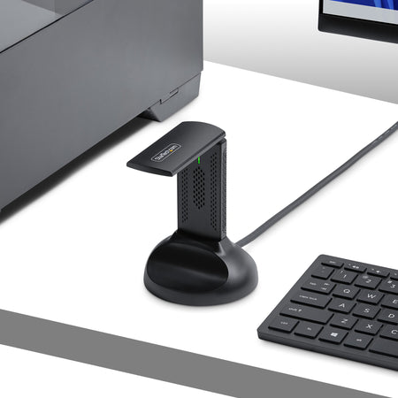 The USB base is magnetized and is equipped with a 3.8ft (1.1m) built-in cable, allowing for flexible placement, which helps with signal reception and minimizes interference. In addition, the USB cradle is rubberized for improved grip when placed on flat, non-metallic surfaces.