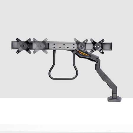 This crossbar monitor desk mount is designed to support up to two 27-inch displays, creating an ergonomic multi-monitor setup that provides an extensive viewing area for productivity. The built-in handle enables moving all monitors simultaneously, while the spring-assisted arm enables multiple adjustments to suit different ergonomic needs.