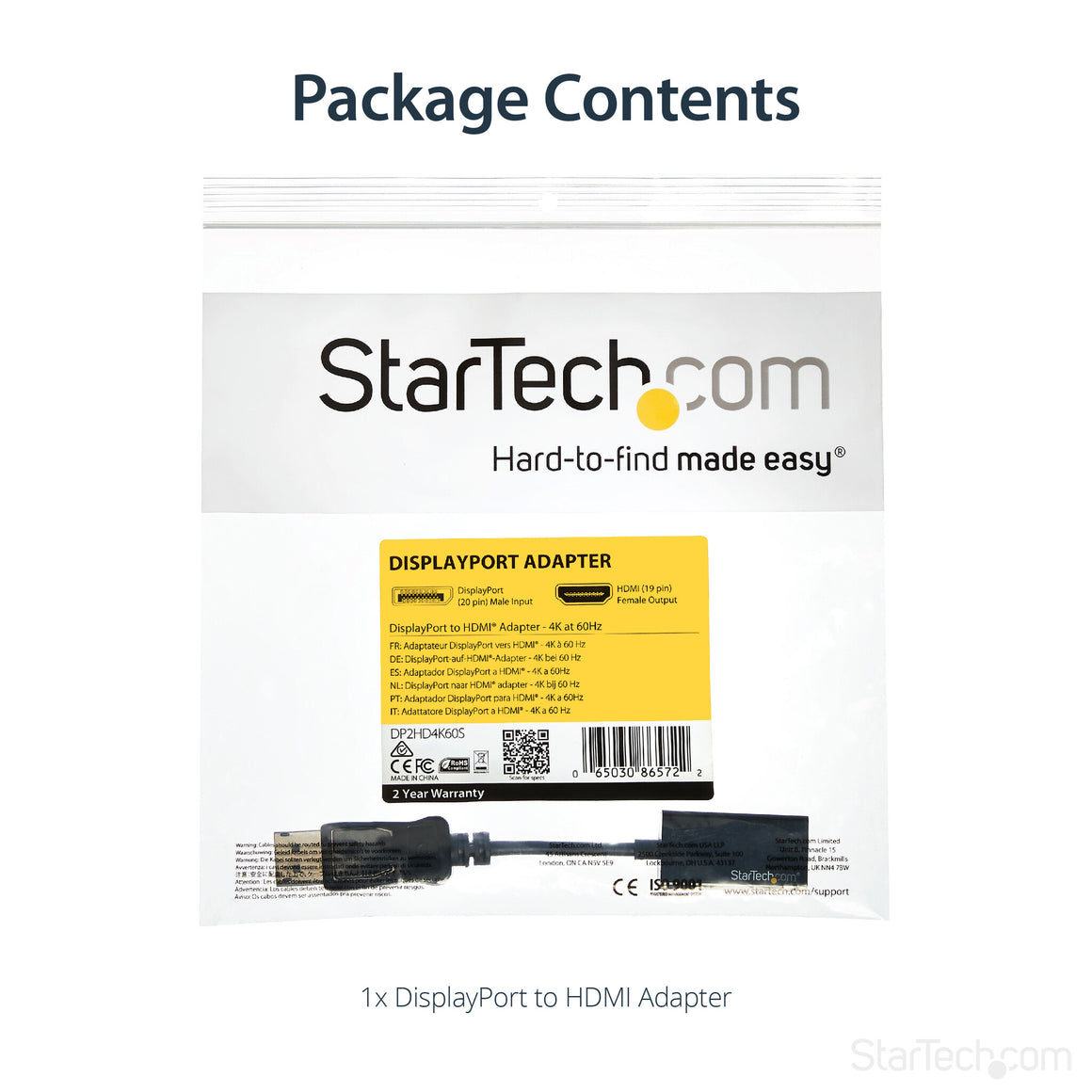 The DP2HD4K60S is backed by a 3-year StarTech.com warranty and free lifetime technical support.