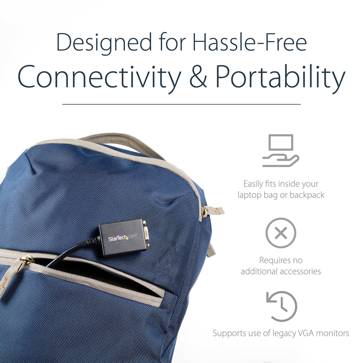 The DisplayPort to VGA converter maximizes portability with a compact, lightweight design, making it the perfect travel accessory to carry with your DisplayPort laptop, fitting easily into your laptop bag or carrying case. This ultra-portable design makes this adapter perfect for BYOD (Bring Your Own Device) applications at the office.