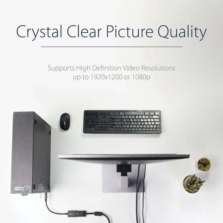 With support for video resolutions up to 1920x1200 or 1080p, you’ll be surprised at the picture quality the adapter provides, even when connected to a legacy VGA monitor, projector or television. The adapter harnesses the video capabilities built into your DP connection to deliver every detail in stunning high-definition.