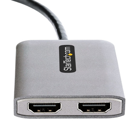 This DisplayPort to HDMI MST Hub drives two 4K 60Hz HDMI monitors from a DisplayPort enabled Windows device.