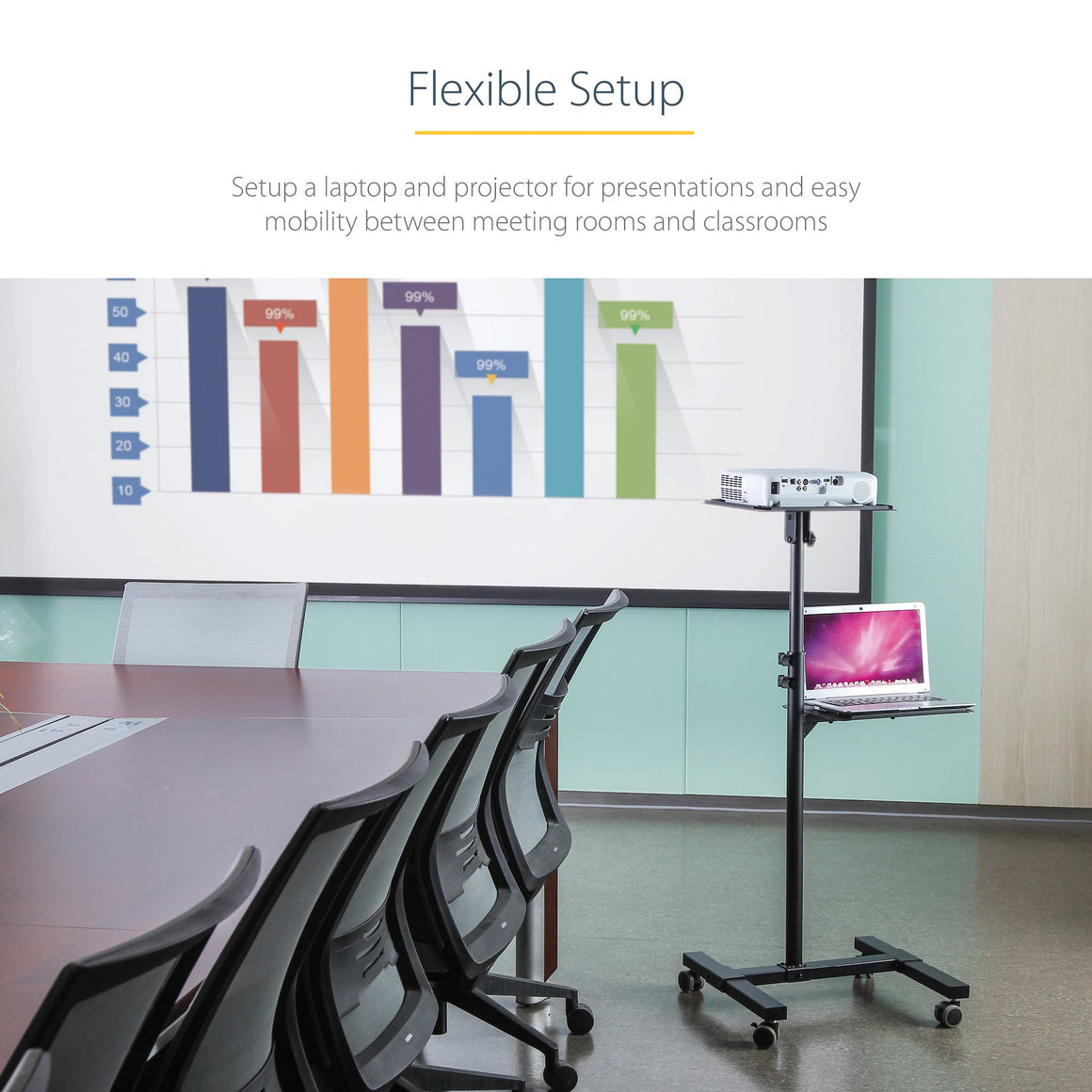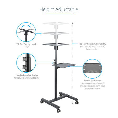 Portable Projector Cart with Laptop Tray | Height Adjustable | Cable Management