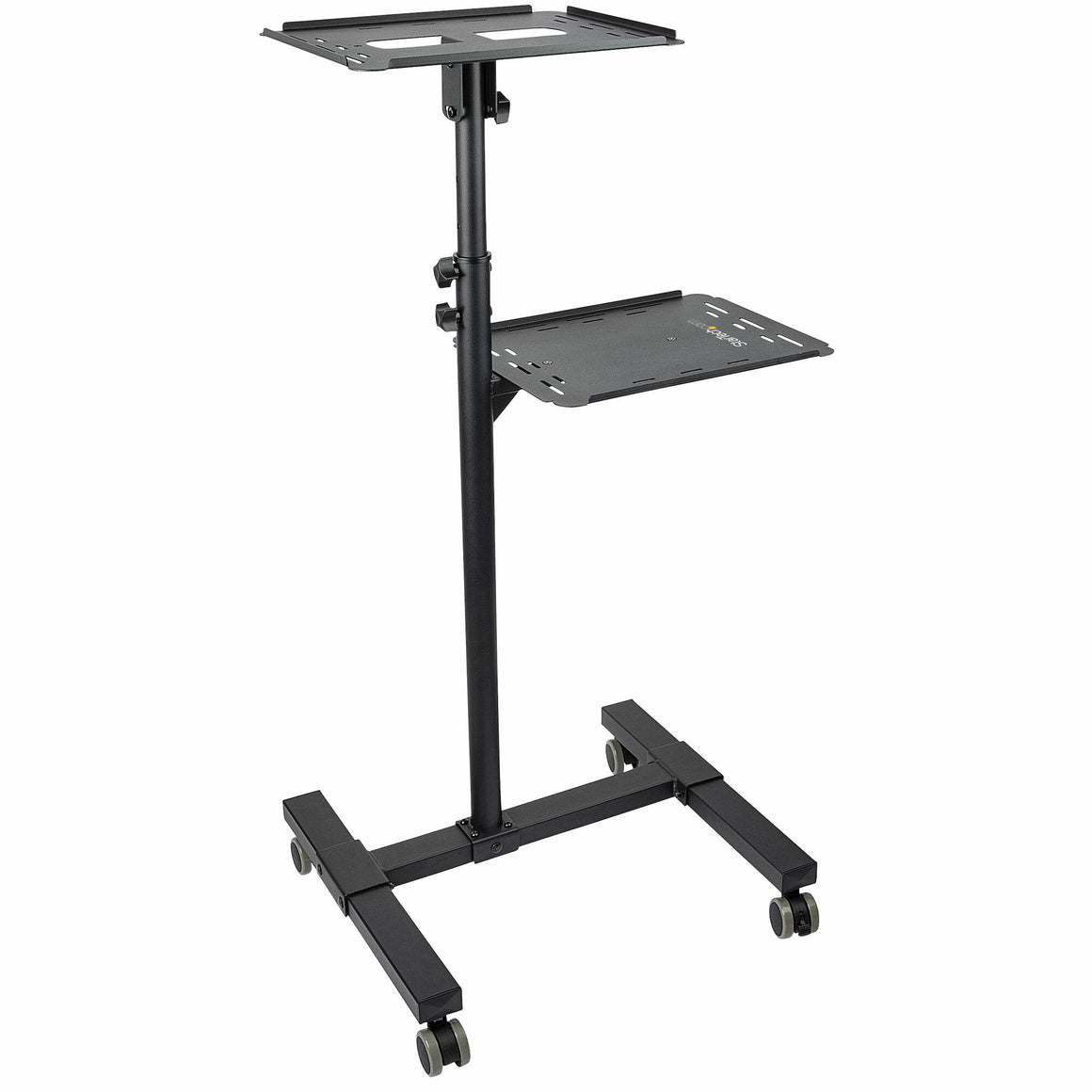 With the two integrated device trays, this mobile projector trolley adjusts to your needs letting you choose where to mount your projector, laptop, and other media devices. Both trays have safety ledges that help prevent your equipment from sliding.