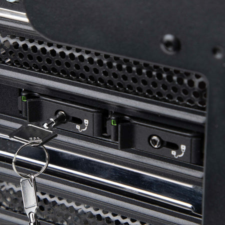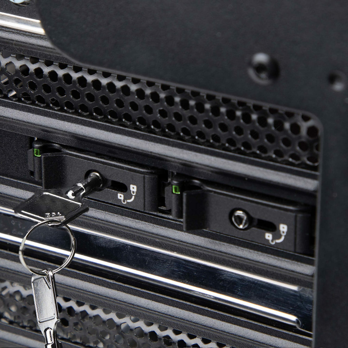 Install an M.2 drive into the drive tray without the need for tools. The drive tray features a power/activity LED indicator to monitor drive status. A latching mechanism with optional lock (2 keys included) deters the theft of mission-critical data storage devices.