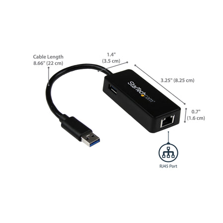 StarTech.com USB 3.0 to Gigabit Ethernet Adapter NIC w/ USB Port - Black
