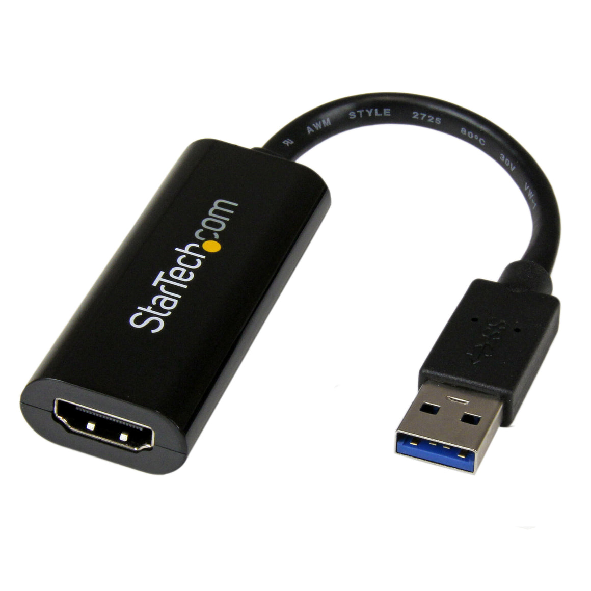 Functioning as an external graphics card, this USB to HDMI adapter provides a convenient way to add multi-monitor capability to a USB 3.0-enabled desktop or laptop computer (optimal performance from USB 3.0, backward compatible with USB 2.0).