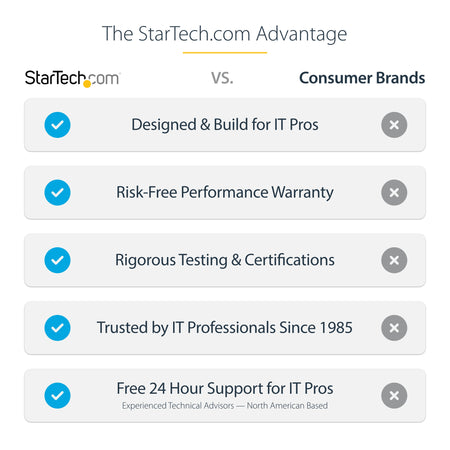 This product is backed for 3-years by StarTech.com, including free lifetime 24/5 multi-lingual technical assistance.