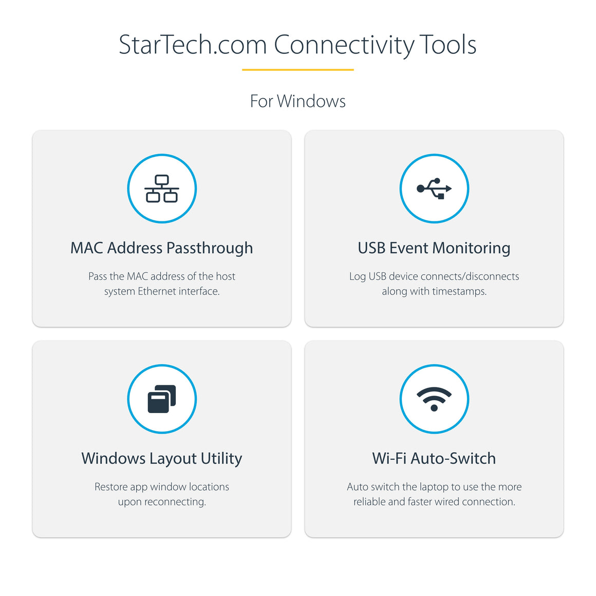 Developed to improve performance and security, StarTech.com Connectivity Tools is the only software suite on the market that works with a wide range of IT connectivity accessories. The software suite includes: