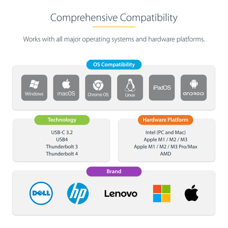 - UNIVERSAL COMPATIBILITY: Works with all major operating systems (Windows, ChromeOS, macOS, Linux), and all hardware platforms including Intel, Apple M1 / M2, and AMD; Works with USB-C, USB4, Thunderbolt 3 & 4