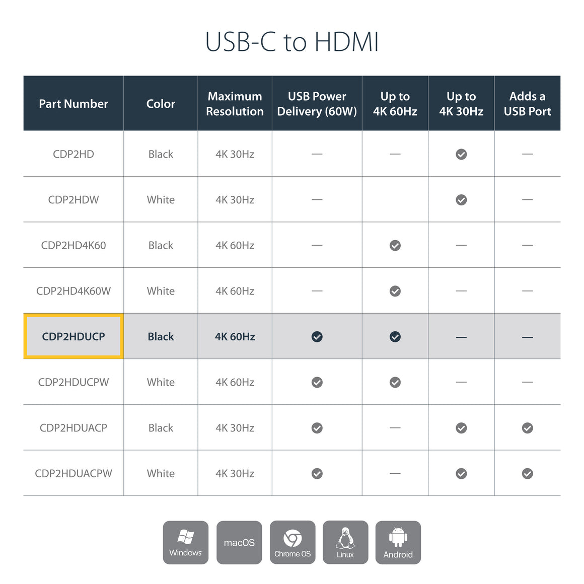 CDP2HDUACP is backed by a StarTech.com 3-year warranty and free lifetime technical support.