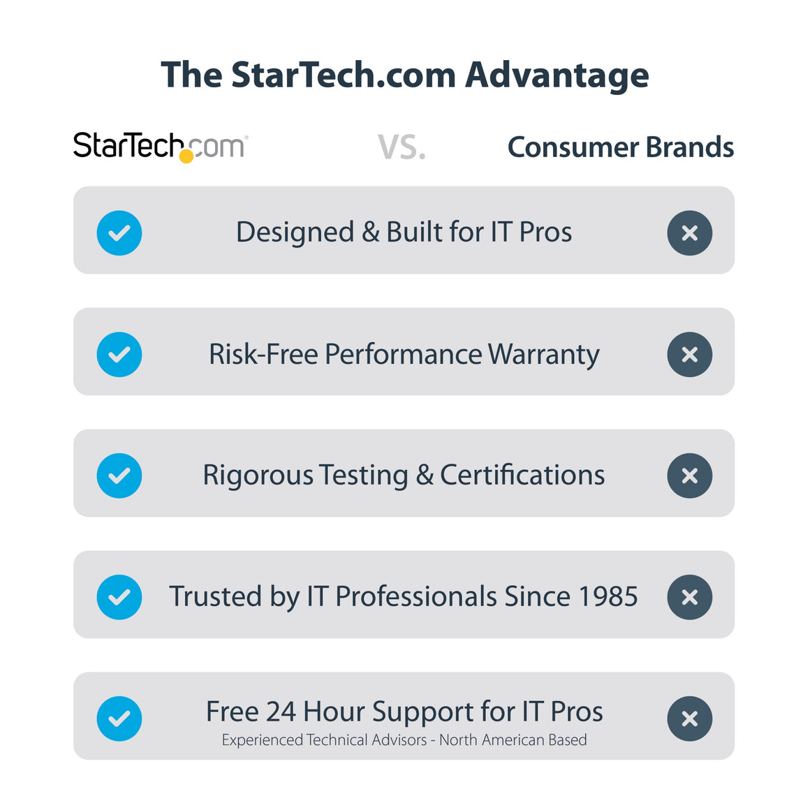 This product is backed for 3-years by StarTech.com, including free 24/5 multi-lingual technical assistance.