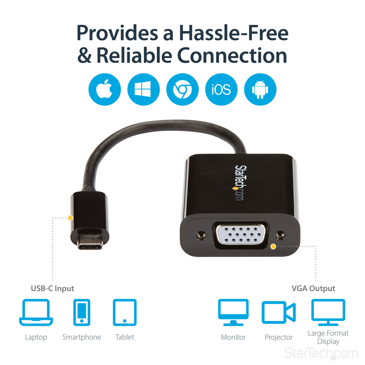 Connect your MacBook, Chromebook or laptop with USB Type-C to a VGA monitor or projector