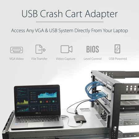 The USB crash cart adapter gives you control of a headless system, turning your laptop into a portable crash cart for rack servers, PCs, ATMs, kiosks, and more.