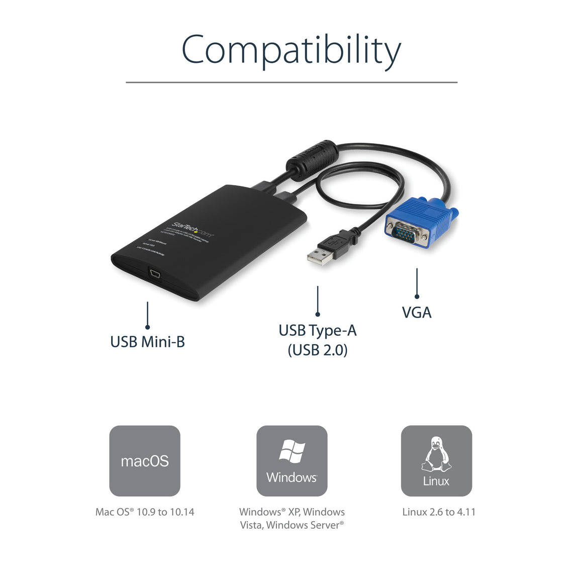 StarTech.com offers a wide selection of high-quality KVM-related products to help you access your systems more efficiently without the expense and clutter of extra keyboards, mice and monitors. This USB KVM crash cart adapter is backed by a StarTech.com 2-year warranty and free lifetime technical support.