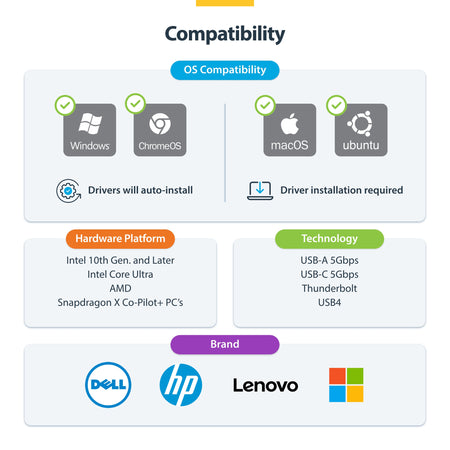 - COMPATIBILITY: This converter works with Windows, macOS, Chrome OS V98+ (Stable Channel), and Ubuntu; Automatic driver installation in Windows and Chrome OS; Requires Driver Download for macOS and Ubuntu; Works w/ USB 3.0, USB-C, USB4, and Thunderbolt