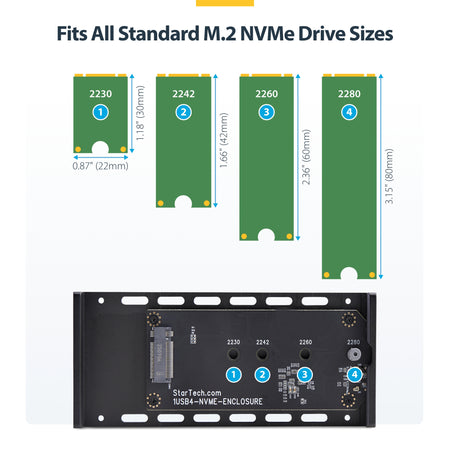 Built for current and next-gen storage, this USB4 enclosure connects M-Key or B+M Key M.2 NVMe SSDs (2230/2242/2260/2280) to USB4, Thunderbolt 5/4/3, or USB 3.2 hosts. It supports PCIe Gen 4x4 NVMe drives and offers native, driverless compatibility with Windows, macOS, and Linux. Seamless interoperability with USB-C and Thunderbolt systems makes it ideal for fast backups and high-volume data transfers.
