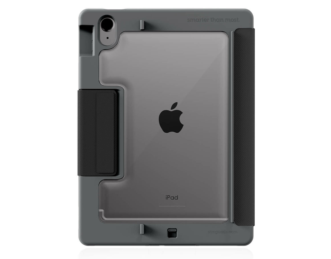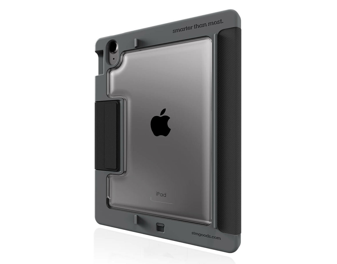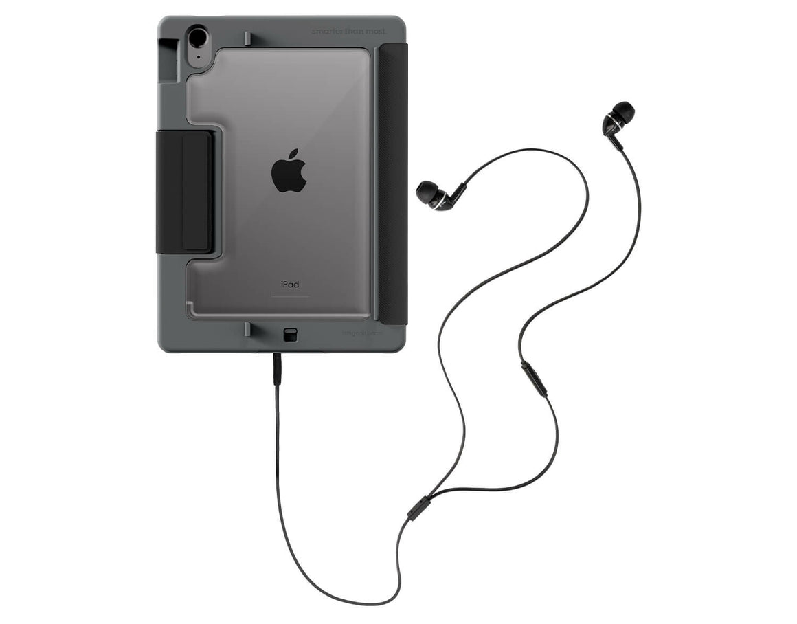 The rugged Dux case for iPad with a built-in aux port. Tough as an ox, smart as a Dux, ready to plug and play. Plug in 3.5mm aux cable headphones to your iPad without needing a dongle. Also comes with built-in USB-C port for charging and DisplayPort. Designed with Apple Pencil 1, Pencil USB-C or Logitech Crayon storage.
