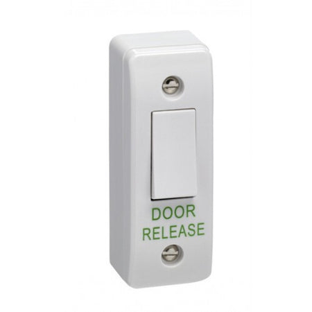 Architrave door release button with single pole double throw contact engraved "DOOR RELEASE"